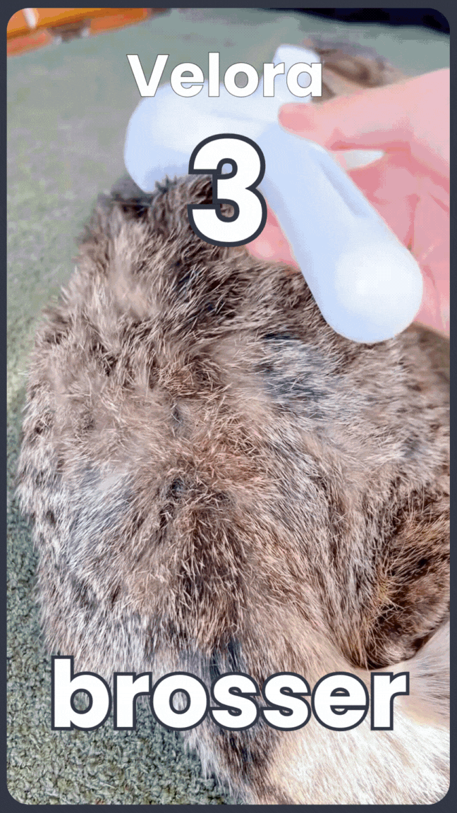 Pour un pelage sain et un environnement sans poils, nous recommandons une utilisation 2 à 3 fois par semaine, ou quotidienne pendant la mue. Même les chats qui n’aiment pas être brossés finissent par l’apprécier, grâce à la sensation agréable que procure la brume.