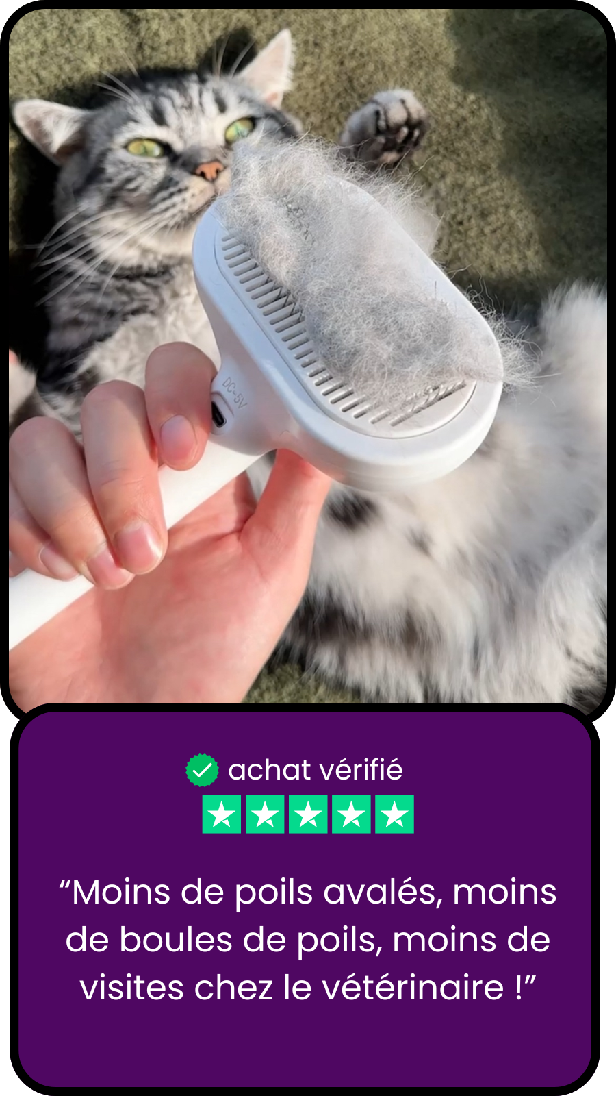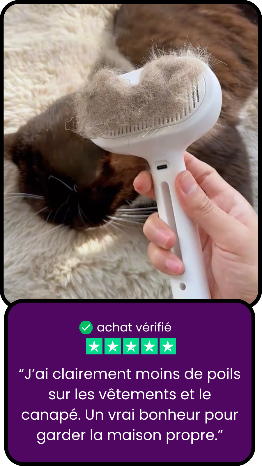 Jusqu’à 3× moins de poils chez vous, et 100% plus de câlins pour lui
